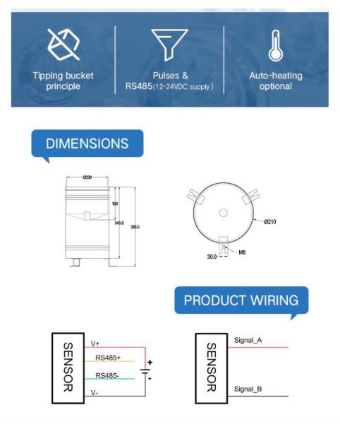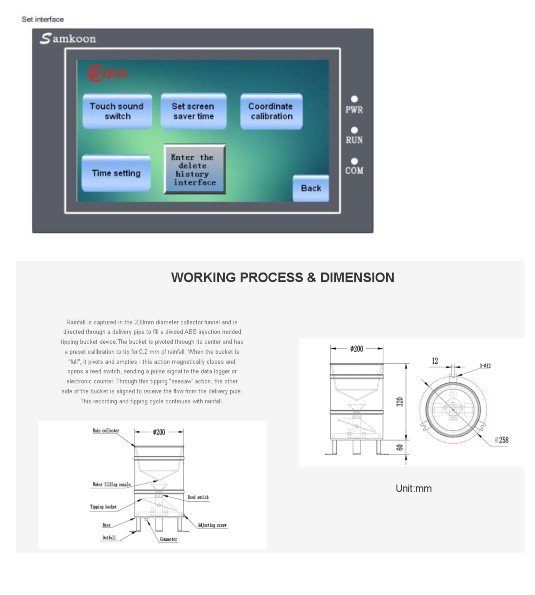 The RKA003 Automatic Rainfall Station is used to measure and record rainfall information. The LCD display can show the real time rainfall value, time & date. Large-capacity FLASH memory chips can automatically stored at least one year of meteorological data. Data logger is equipped with three types of communication interfaces (RS232 / RS485 / USB) which establish communication with the computer. Data of rainfall can be observed remotely through the supporting PC software. Meteorological weather data can be further processed and analyzed by the data logger.The station can be equipped with rainfall sensor.